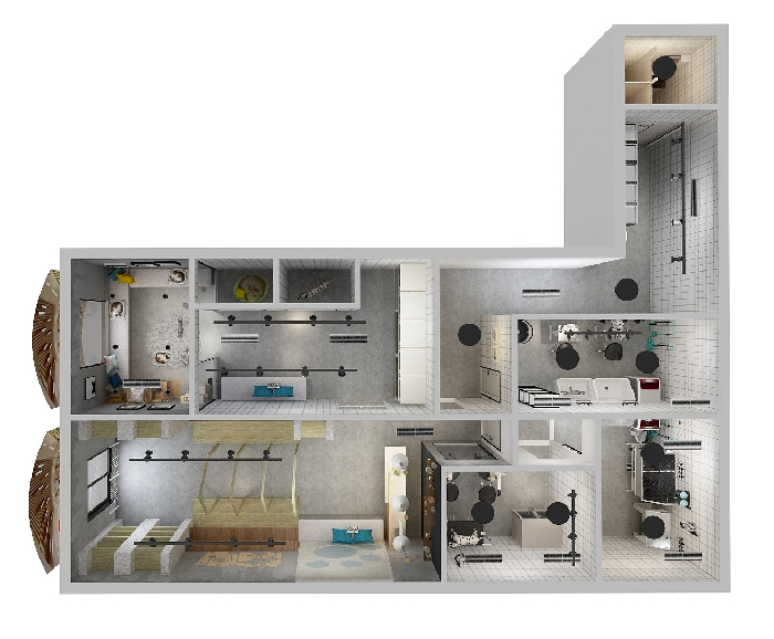 the total area of the original classroom is about 168 square meters; It is divided into beauty teaching area of 106square meters and bathing teaching area of 62 square meters